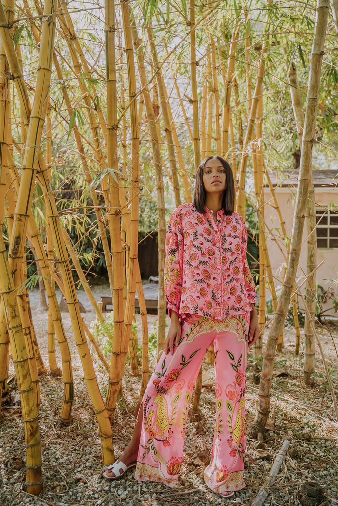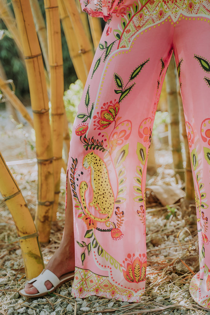 The Agneta pants in Yucatan Flowers print are a vibrant statement piece designed for both style and comfort. Crafted from lightweight viscose , these flowy pants provide breathability and ease of movement, perfect for all-day wear. Featuring a wide-leg cut, they offer a relaxed, flattering fit. The bold Yucatan Flowers print, with its bright floral motifs, adds a striking pop of color to any outfit. With an elastic waistband, these pants ensure both a secure fit and comfort.