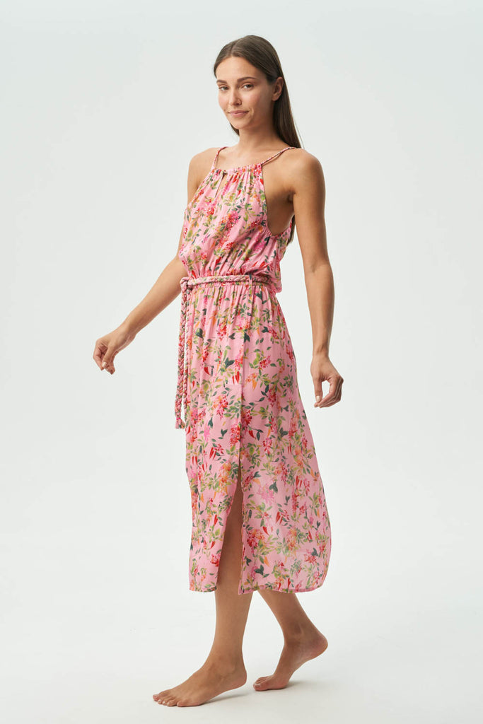 Embrace effortless elegance with the YARA dress in the vibrant Serrano Garden print. Made from breathable viscose, this dress drapes beautifully with a lightweight feel that’s perfect for warm weather. The halter-style neckline with delicate gathers offers a graceful silhouette, while the keyhole detail adds a subtle touch of allure. An adjustable braided belt cinches the waist for a flattering fit, and the midi length with side slits provides freedom of movement and a hint of flirtiness. Ideal for sunny strolls, garden parties, or laid-back getaways, the YARA dress pairs effortlessly with sandals or strappy heels.